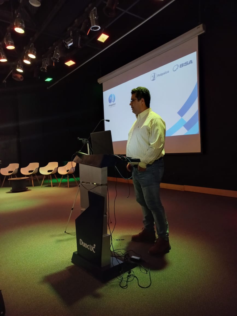 Ante más de un centenar de estudiantes de las carreras de Ingeniería en Construcción, Topografía y Técnico en Construcción del Instituto DUOC UC, Rubén Cerda, Jefe de Operaciones de Coactiva, dictó una charla centrada en la labor que desde 2005 realiza la planta de gestión y tratamiento de residuos del grupo Polpaico BSA.